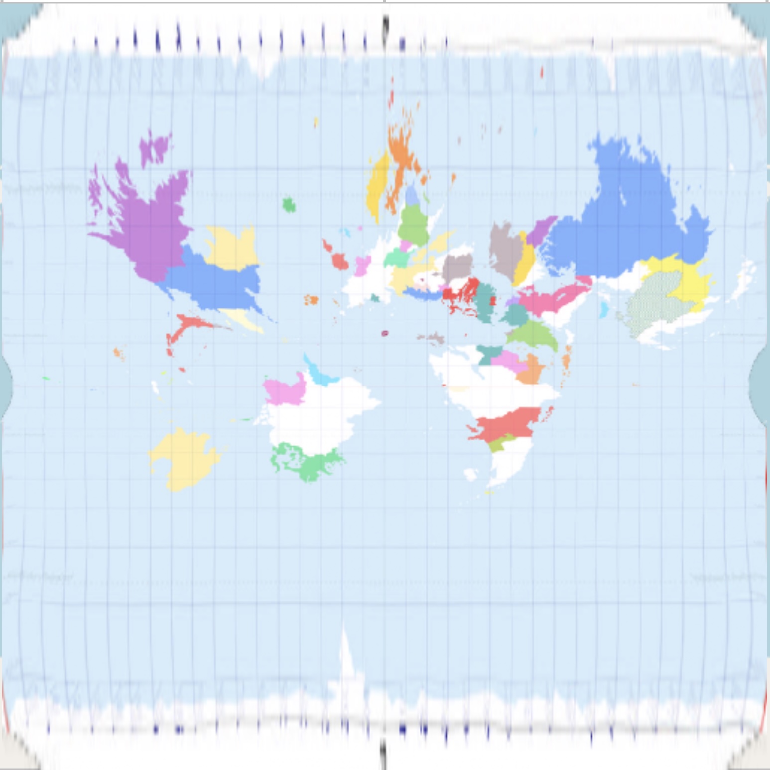 Der Grund: Die alte Version zeigte mehrere Länderformen, die unverändert aus einer Plate-Carrée-Projektion übernommen wurden. Das ist ein Hinweis darauf, dass die Shapes nicht durch die mathematische Wagner-VII-Transformation liefen. Bei einer echten W7-Projektion müssten sie nämlich sichtbar gebogen bzw. seitlich gestaucht sein