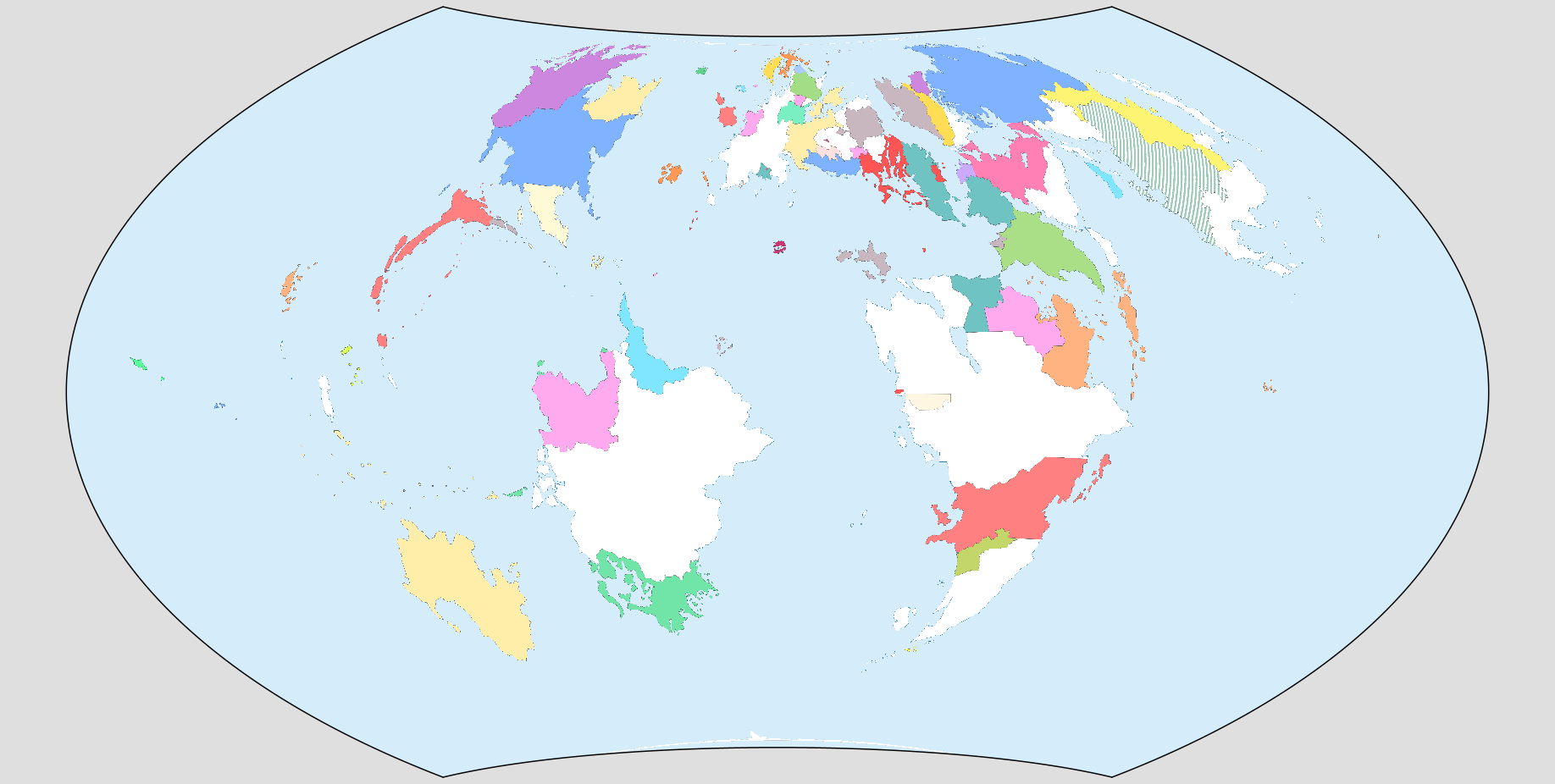 Ich weiß auch dass manche Länder aus dem Unwissen von damals bei der Eintragung dann nicht mehr ihre Form auf einer 2D-Karte wiederfinden würde wenn es nicht Wagner VII dargestellt wird - das ist halt ein Thema das kannste physikalisch nicht ändern (auf einem Globus wäre das weiter sehr nahe wie von Abby oben dargestellt). Auch da gibt es aber eben den Weg den Tin versucht hat, Astor oder jedes andere Land, dass es bräuchte dann halt etwas anzupassen.