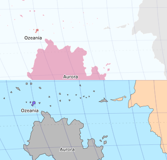 Dann grenze ich das mal für dich ein. Die aktuelle Karte im Vergleich zur letzten Karte vor dem neuen Design.Delegierter von Aurora und Ozeania