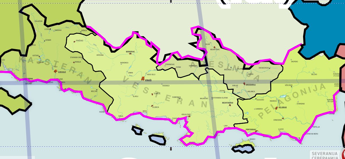 Ich könnte beim nächsten Update eure Nordgrenze redaktionell anpassen, die Binnengrenzen hatte ich genau von dieser Karte übertragen. Für die Südküste bräuchte es meines Erachtens allerdings ein Verfahren da ich den Kontinent nicht ohne dieses ändern möchte. Wäre die violette Nordgrenze für euch so in Ordnung?